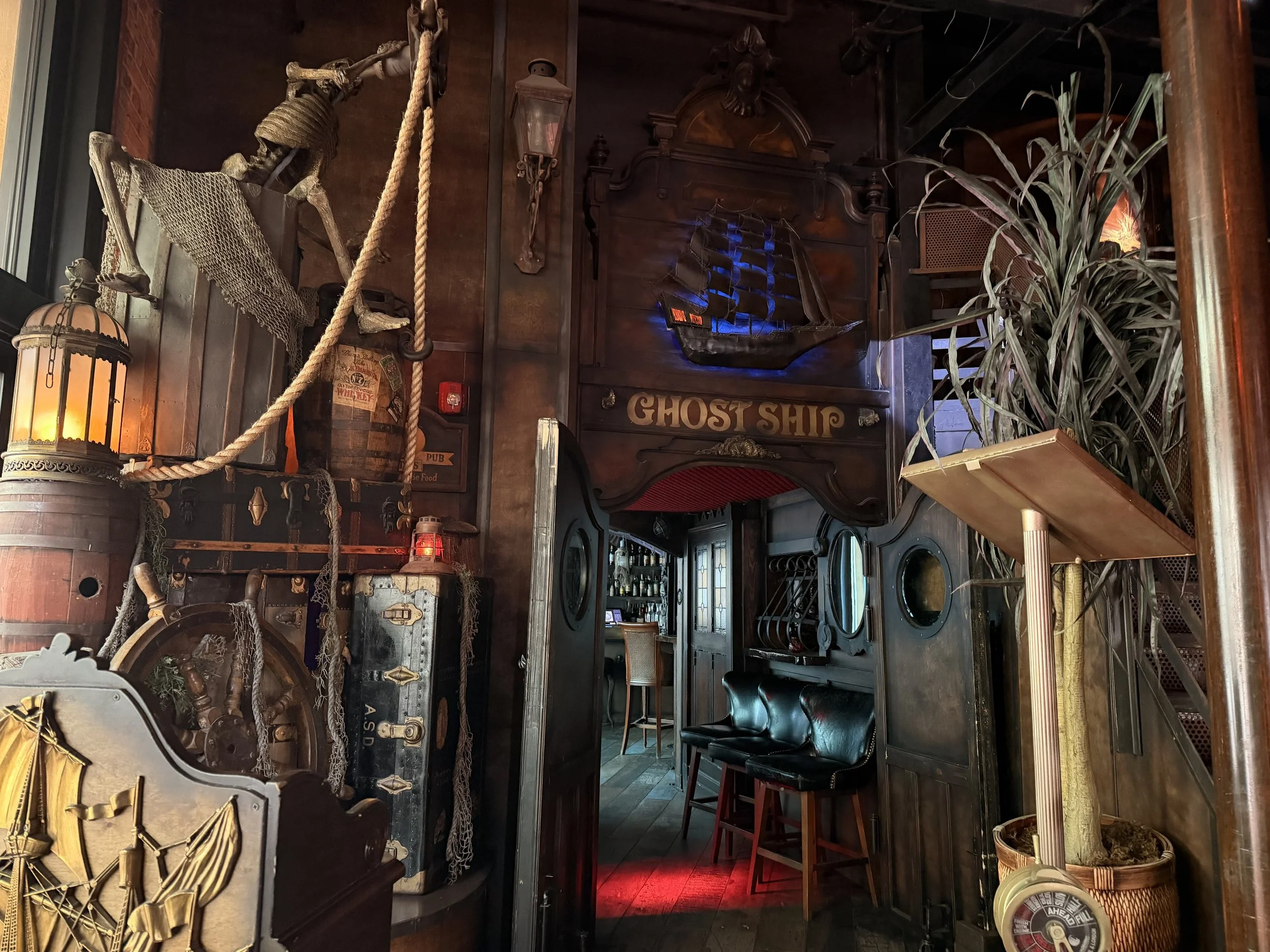 Ghost Ship is an immersive cocktail bar hidden inside The Grand, built to feel like a weathered pirate ship lost at sea. Low light, dark wood, and drinks strong enough to keep the crew steady.